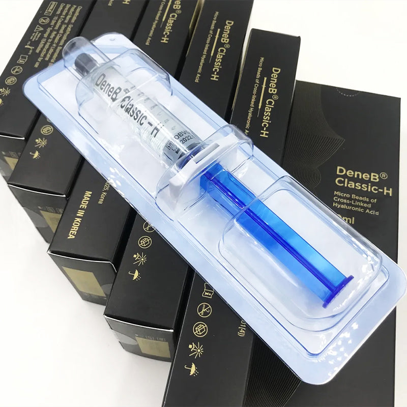 DeneB Classic H besitzt eine festere Gelstruktur für größeren Volumenaufbau an Gesäß, Brust, Hüften oder Waden. Mit 25–27-G-Kanülen wird der Filler in die tiefe Subkutis injiziert.