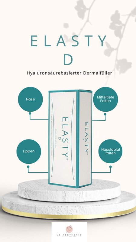 ELASTY D (auch Elasty Deep oder D Plus) ist ein hochentwickelter Hyaluronsäure Filler für mittlere bis tiefe Falten und Volumenaufbau. Er nutzt die PNET™ Technologie, die Hyaluronsäure Moleküle mit minimalem BDDE zu einem stark vernetzten, elastischen Gel verbindet.